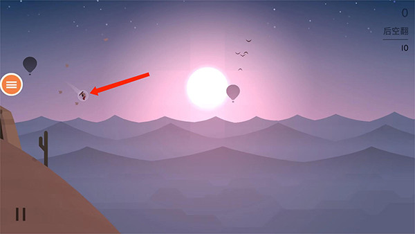 5、经过大坡,我们可以按住右边屏幕进行后空翻,获取更高的分数,注意不要头先着地,