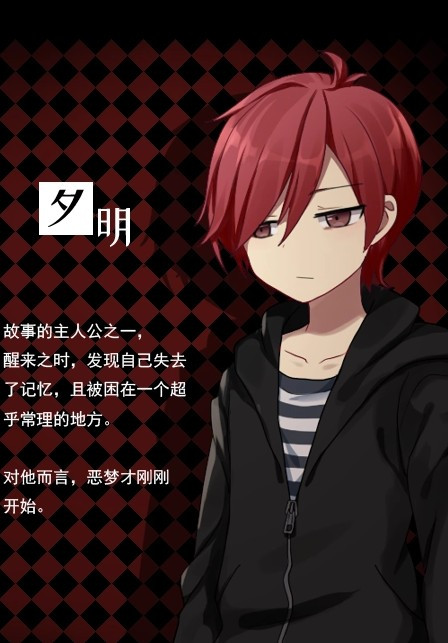 黑色花与红山羊故事的主人公之一,醒来之时,发现自己失去了记忆,且被困在一个超乎常理的地方。对他而言,恶梦才刚刚开始。