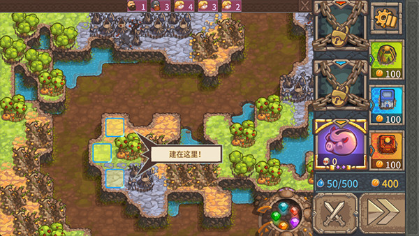 3、建造完成后,即可开启防御下一波敌人的进攻,整个防御过程中,防御塔会自动攻击敌人,点击右下角绿色按钮可以快进。