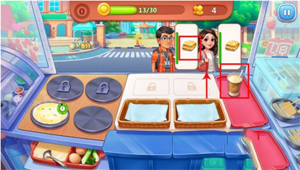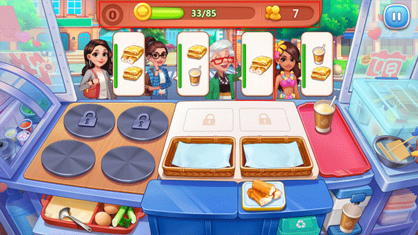 2、玩家只要根据客人的口味来做出她们喜欢吃的煎饼,不过需要注意的是旁边绿色的进度条,这表示客人的忍耐值,当忍耐值达到红色时,就表示客人已经很生气了。
