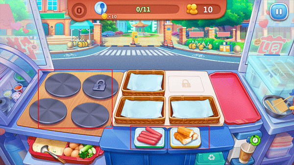 4、挑战方式是:以关卡的方式同样的玩法,继续煎饼子和豆浆给客人