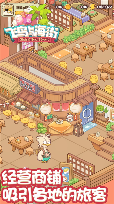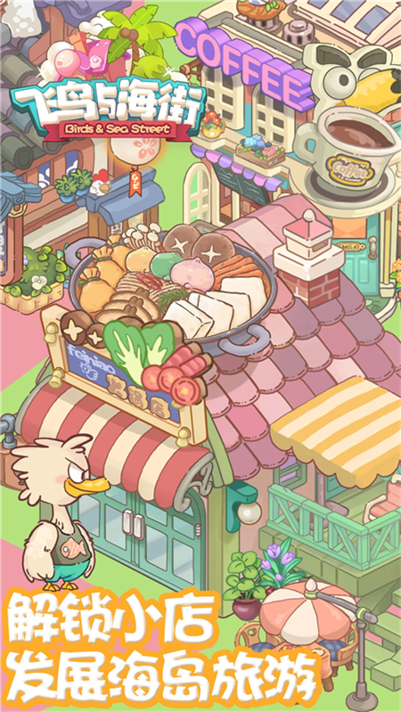飞鸟与海街是画风清新可爱的模拟经营类手游,构建出温暖治愈的海岛世界。飞鸟与海街小游戏下载玩家将来到风景宜人的飞鸟岛,从零开始打造属于自己的商业街区,逐步经营宾馆、咖啡店、火锅店等多种店铺,让原本宁静的小岛变得繁华热闹。飞鸟与海街游戏支持自由装修与风格搭配,玩家可以根据个人喜好设计店面外观与内部陈设,体验创意布置的乐趣。玩法上融合了消除元素,通过完成居民订单获取资金与物资,用于扩展经营规模。