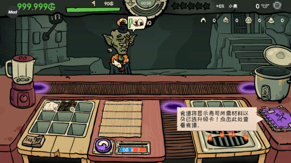 7、在屏幕下方会显示寿司售价,它的计算会随所选食材和升级卡变化。