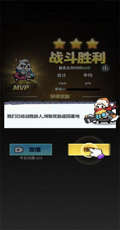6.击败所有波次的丧尸,获得战斗胜利领取奖励。