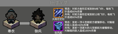 常态:对前方扇形区域发射6枚飞针,每校飞针渲成60%6伤害