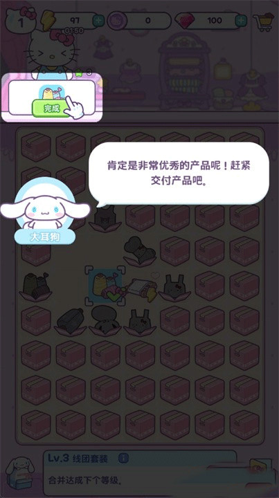 1、凯蒂猫我的梦之店游戏开始要通过合并两个方块,获得更高等级的方块。