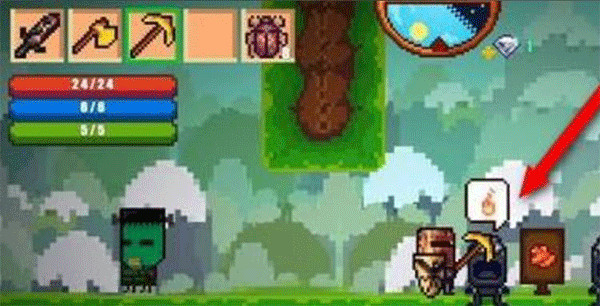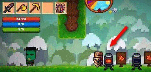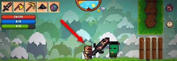 1、像素生存游戏2汉化版是一个快速访问栏,我们可以在那里更换武器。一开始,我们都有三个项目。一个攻击武器和两个收集武器。