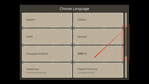 1、初次进入minidayz2汉化版游戏我们需要手动选择语言,下滑找到“繁体中文”字样点击即可切换。