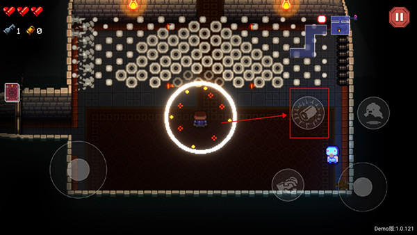 1、下载并安装逃出地牢移植版游戏后,运行并载入存档,即可开始地牢冒险。左手控制角色移动方向,角色会自动开火,轻松上手。