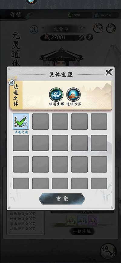 5、仙众可以进行重置,重置不损失资源(培养仙众的资源全部返还),重置可以在对应仙众角色 界面﹣形象右边﹣返还符号处进行操作;