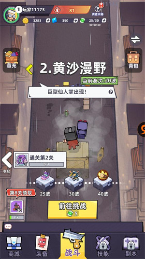 4、不断消灭敌人提升自己的等级,坚持更多波次来消灭最终boss赢得胜利。