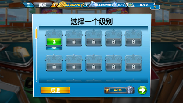 4、这时候你就可以用自己营业后得到的金币升级自己的厨具、食物和饮料了,后期还会解锁新的东西,记得积攒你的金币来进行购买。
