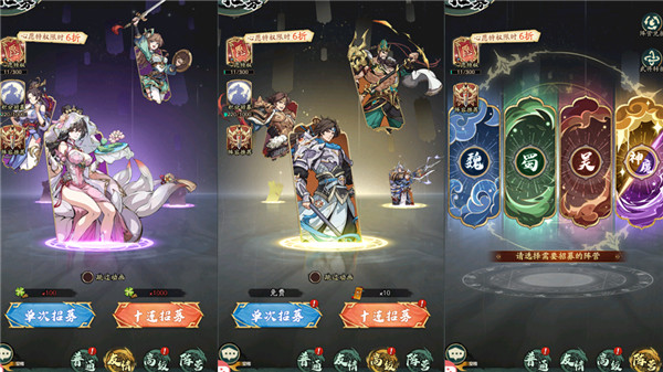 阵营招募:这是一条以“风华录”为誓的招募之路。魏、蜀、吴、神魔五大阵营,各具特色,英雄辈出。您可根据自己的战略需求,选择心仪的阵营进行招募,从而构建出独一无二的战队体系。在这里,您将体验到策略与勇气的完美融合,以及不同阵营之间独特的战斗风格与技能组合。通过阵营招募,您将能够打造出属于自己的传奇军队,共同书写属于您的辉煌篇章。