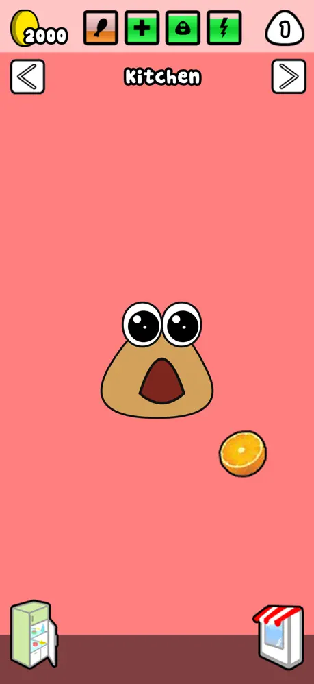 2、在游戏中和你的pou一起玩耍,收集硬币,同时需要不断照顾它,给它喂食。