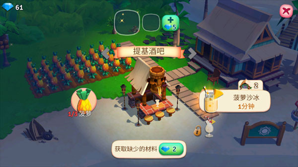 在游戏中随着等级的提升会有不同的果树可供采摘,其中比较基础的有椰子树,芒果树等等,这些树的果实,不仅可以直接送货完成任务,还能为酒吧制作各种饮品。特别是椰子树。玩家一定要好了就摘。