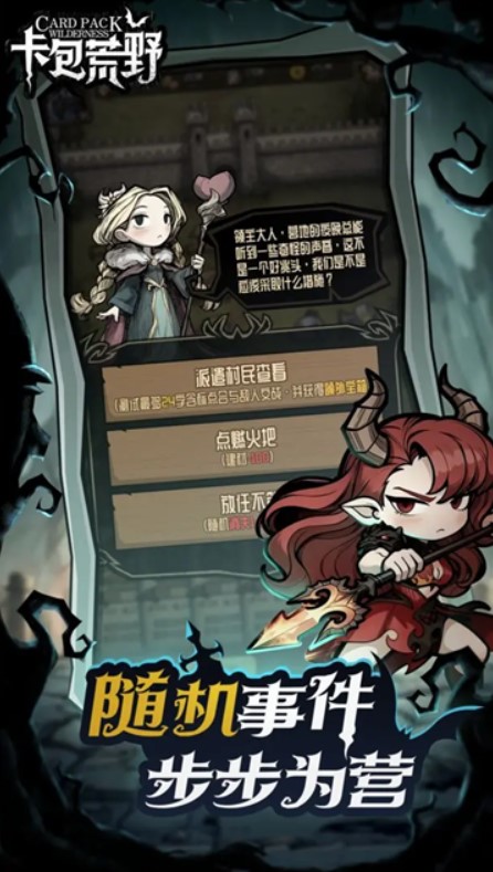 2、卡包荒野丰富多样的卡牌种类由你自由使用,建筑卡帮助你扩建营地,角色卡助你抵御外敌。
