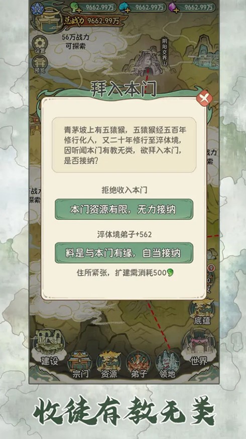 根据弟子天赋分配资源,打造炼丹、战斗等专精团队,增强宗门综合实力。