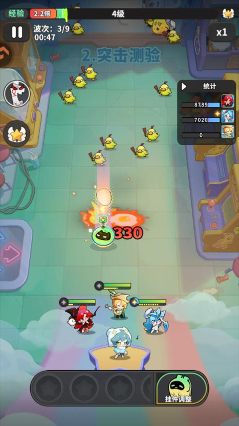 8、通过查看左上角的信息,可以了解对局的进度,在boss战到来之前尽快提升精灵的伤害。