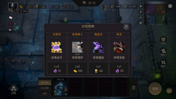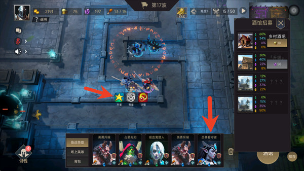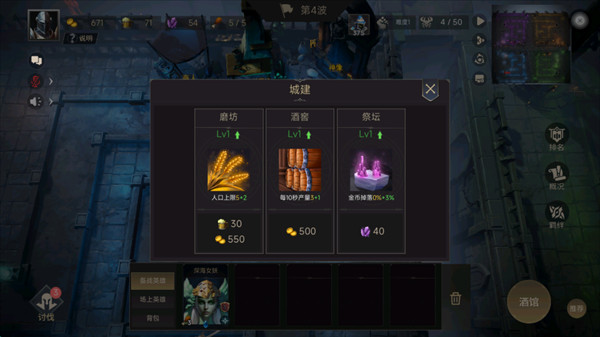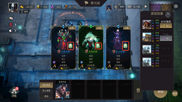 3、酒馆里挑选心仪英雄,培养强化,带队挑战更高难度的关卡,一步步变强。