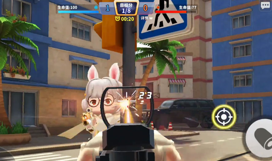 1、迷你枪战精英画面美术风格还是十分不错的,道具武器可以自由搭配,开始自己的射击战斗。
