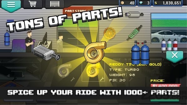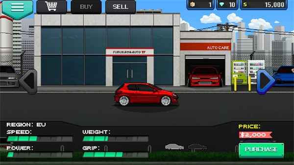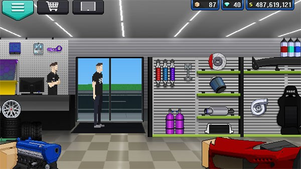 1、首先是像素赛车手全局的变化,现在进去车库或者商店等都会有一个类似翻页的过场动画,其次是游戏的帧数更高了,玩起来比以前更流畅;