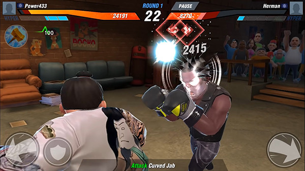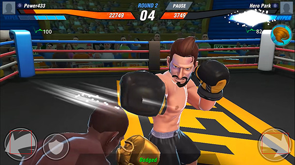2、当敌人打出勾拳的时候我们一定要做好防守角度,敌人右勾拳我们就往左边移动,敌人左勾拳我们就往右移动!当他没有打中我们,这时我们就可以采取返攻了,直接给他来一套左右勾拳,然后把他打晕,我们快速点击敌人在他晕眩的时间内,打出高额的伤害!