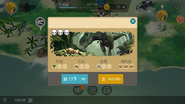 3、收集尽可能多的建筑材料,建造无法穿透的堡垒。但你必须小心翼翼地保护栅栏的高度,因为一些恐龙会很容易地跨过你的栅栏,拜访你可怜的家。