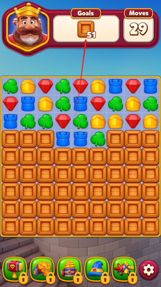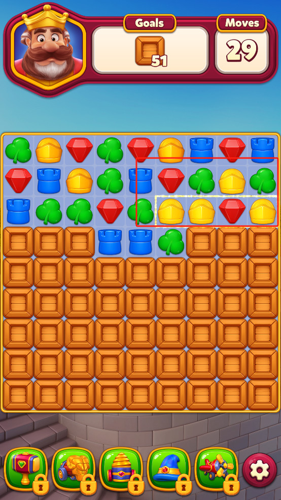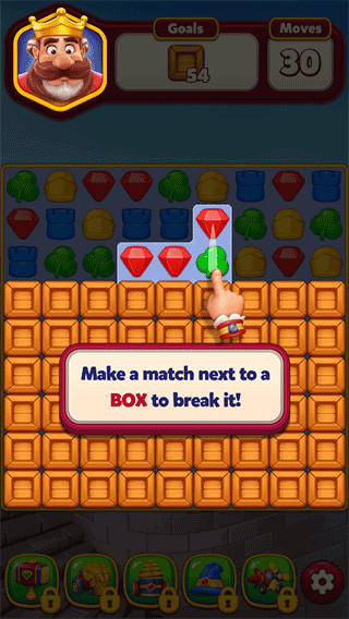 1、 通过组合三个或更多相同颜色的方块,完成皇家王国中文版中每个关卡的挑战。