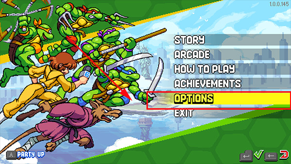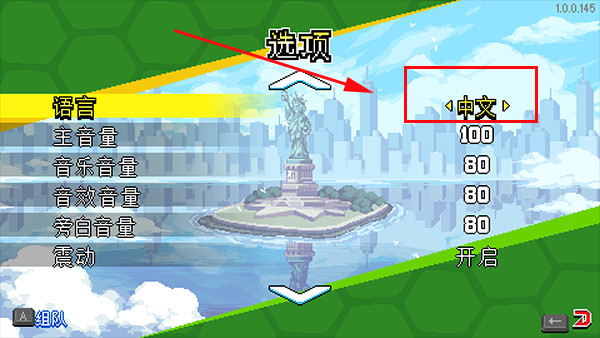 1、下载安装好忍者神龟施莱德的复仇手机版,通过上方的设置将字体设为中文;