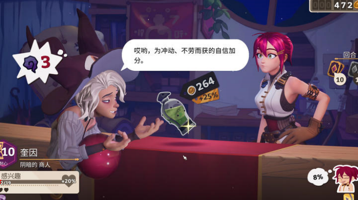 角色关系与经营目标深度绑定,例如通过好感度获取稀有材料或强力卡牌,助力药水品质提升和销售策略优化,形成“经营-互动-成长”的正向循环。