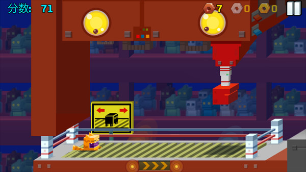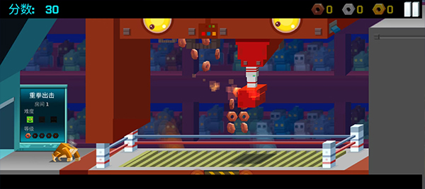 1、在逃出实验室无论是点击屏幕控制传送带的左右方向躲避下落拳头的重拳出击。