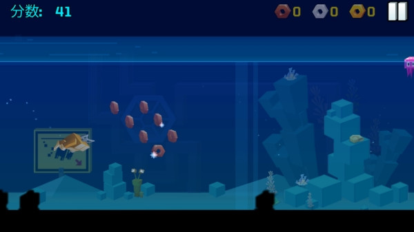 6、水族馆大冒险:通过点击屏幕使角色下潜,控制高度躲避障碍水母。