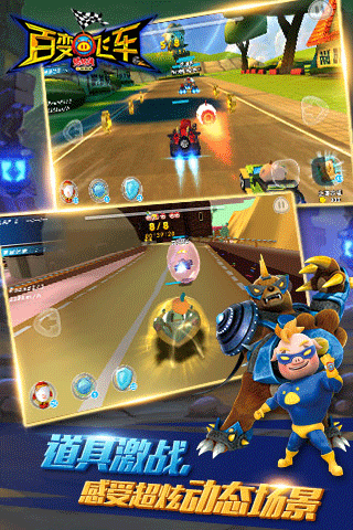 1、首创变身系统:猪猪侠百变飞车游戏首创了变身系统,让玩家在比赛中可以变身成无可匹敌的形态,获得加速优势。