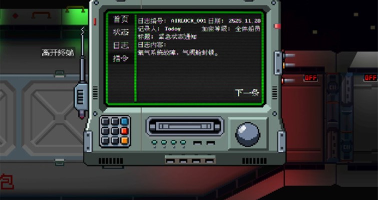 3. 查看日志信息:在设备界面查看任务日志(如飞船状态、指令等),点击“下一条”浏览更多内容;