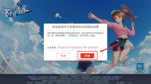2、阅读协议后点击红框箭头指向的红色同意按钮。