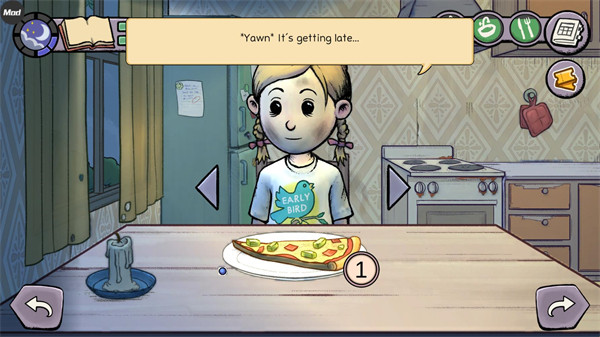 7、左上角显示的是一天的时间流逝。每次互动都会消耗时间,当夜晚到来时,记得让孩子按时入睡,结束这一天的生活。