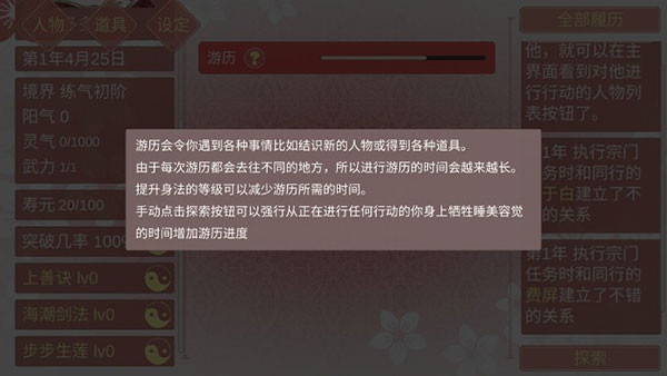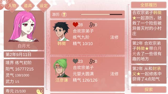 2、进入游戏界面之后,会自动进行游力,遇见人和事;
