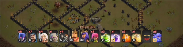 另外,这套暴力狗球流是带了天女的,如果弓箭女皇级别太低、正在休息或者正在升级的话,可以将弓箭女皇、天使和炸弹人改成气球和少许的亡灵。