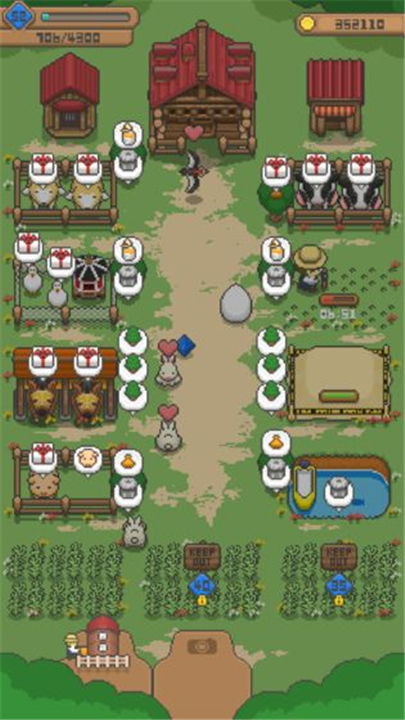小鸡、小牛和小羊等动物会成为牧场发展的核心内容,玩家通过扩充饲养区域和提升环境热闹度,让牧场慢慢变得更有生气。