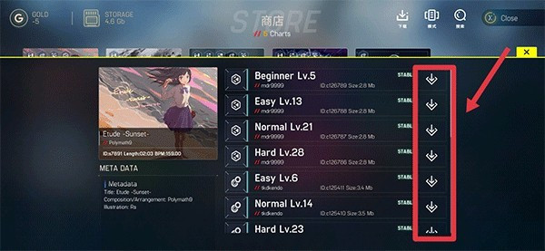 4、下载完成后的谱面会出现在列表中。