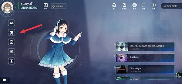 1、进入Malody谱面资源游戏,在游戏首界面中点击右边购物车功能。