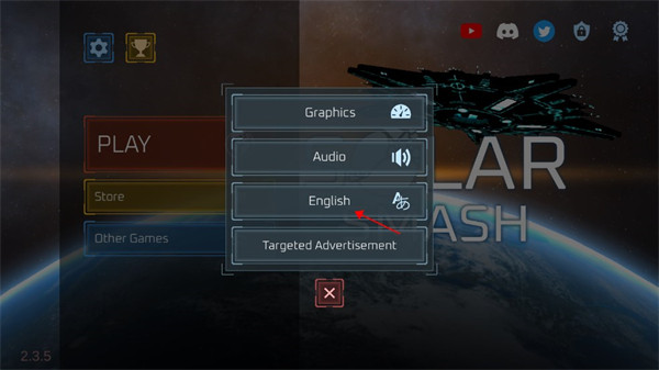 1、在本站下载星球爆炸模拟器2026游戏安装好之后,首次打开默认是英文语言,点击Settings;