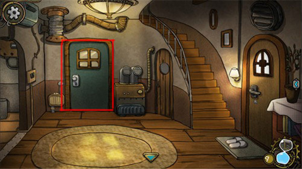 6、在客厅会跟母亲有一些剧情故事,然后母亲让我们把做好的曲奇饼拿到楼上给妹妹,所以我们点击屏幕下面的返回按钮,回到大厅。