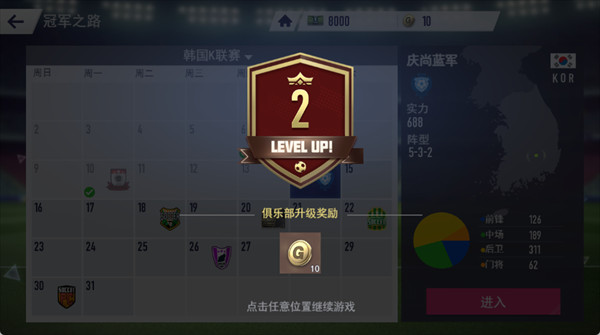 参与 “冠军之路” 等赛事可提升俱乐部等级,升级后能获得金币等奖励,这些奖励可用于后续球队建设。