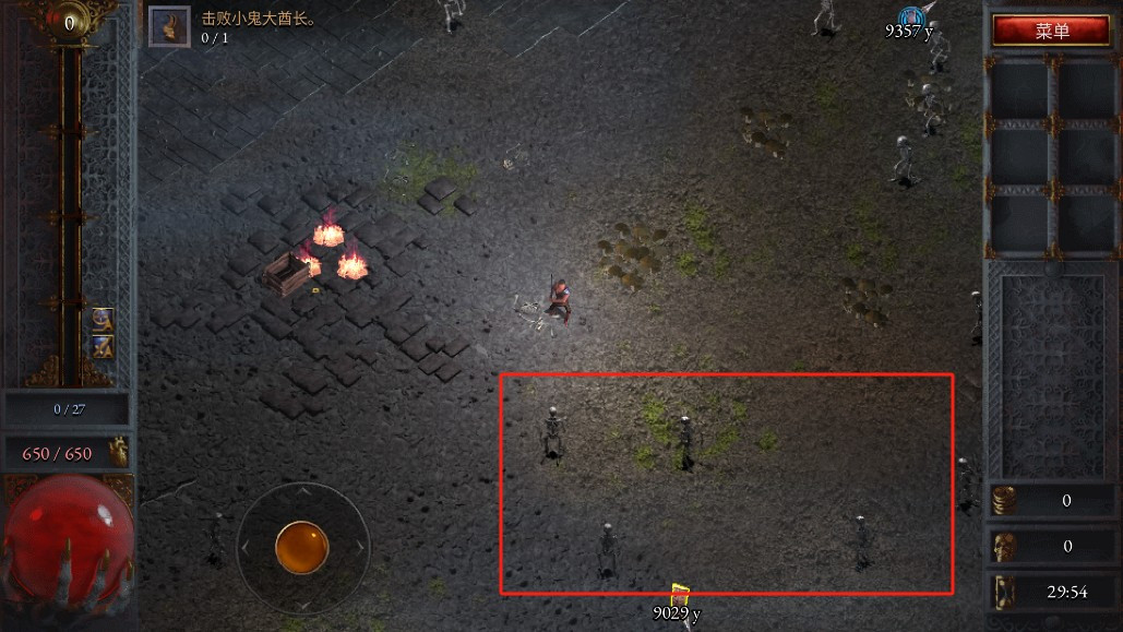 4、当角色属性强化得差不多时,就可以进入关卡挑战,开始对抗骷髅怪等初级敌人。