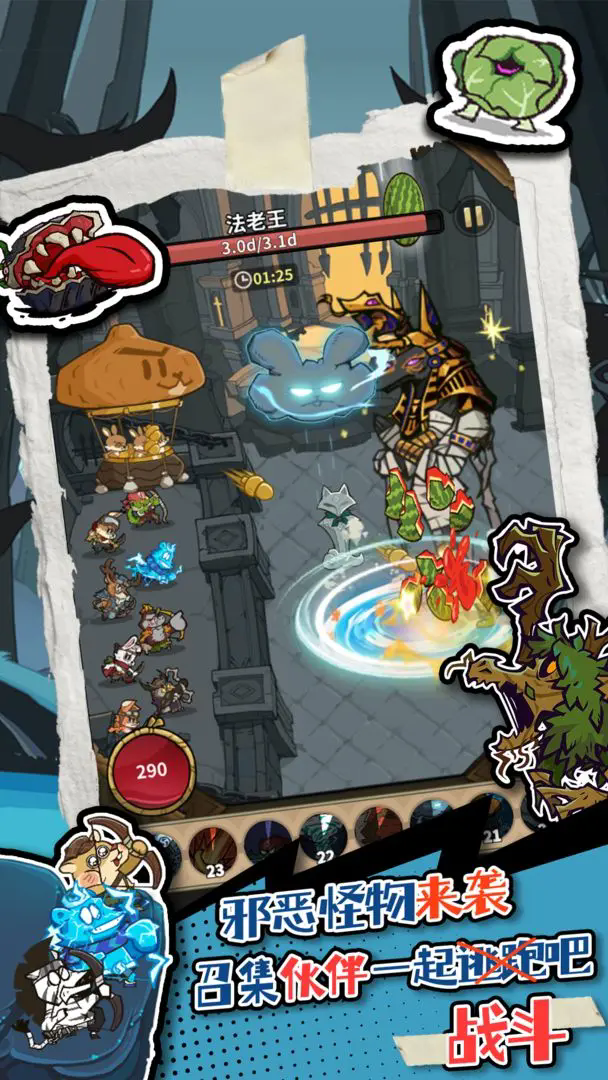 1.邪恶怪物来信,召集自己的伙伴一起来五芒星战记手机版开始防守战斗,搭配羁绊完美对决。