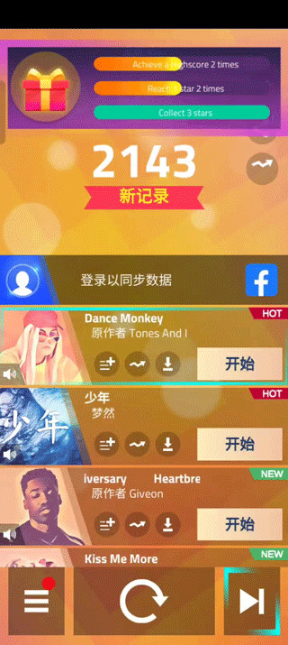 3、简单,容易上手但有挑战性。在一些高速歌曲中只敲击黑色的钢琴瓷砖可以是一个真正的挑战。