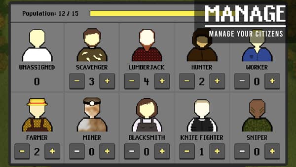 2、把你的幸存者们分配给农夫和守卫等工作,一起进入繁荣的新时代。