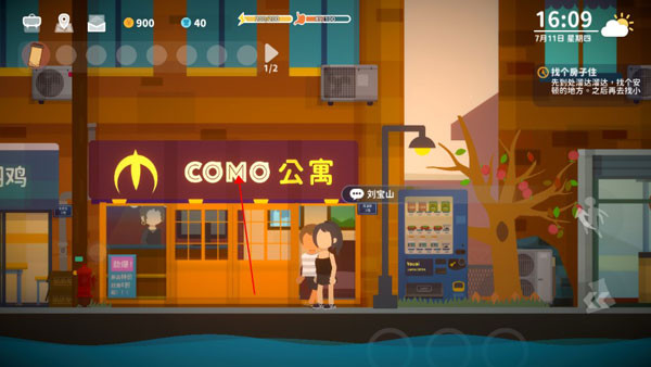 1、进入小生活悠闲小镇物语完整版游戏后一直往左走,来到como公寓。
