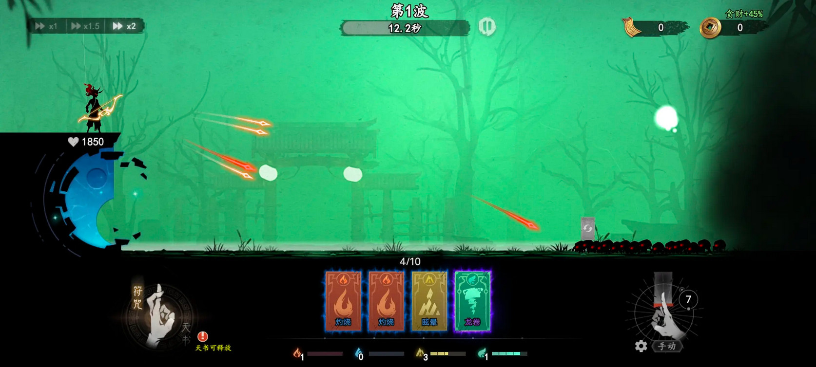 研究敌人:每波开始前看看敌人类型和属性(血厚?移速快?飞行?抗击退?主页志怪录查看)。提前规划符咒,天书的使用/升级方向。